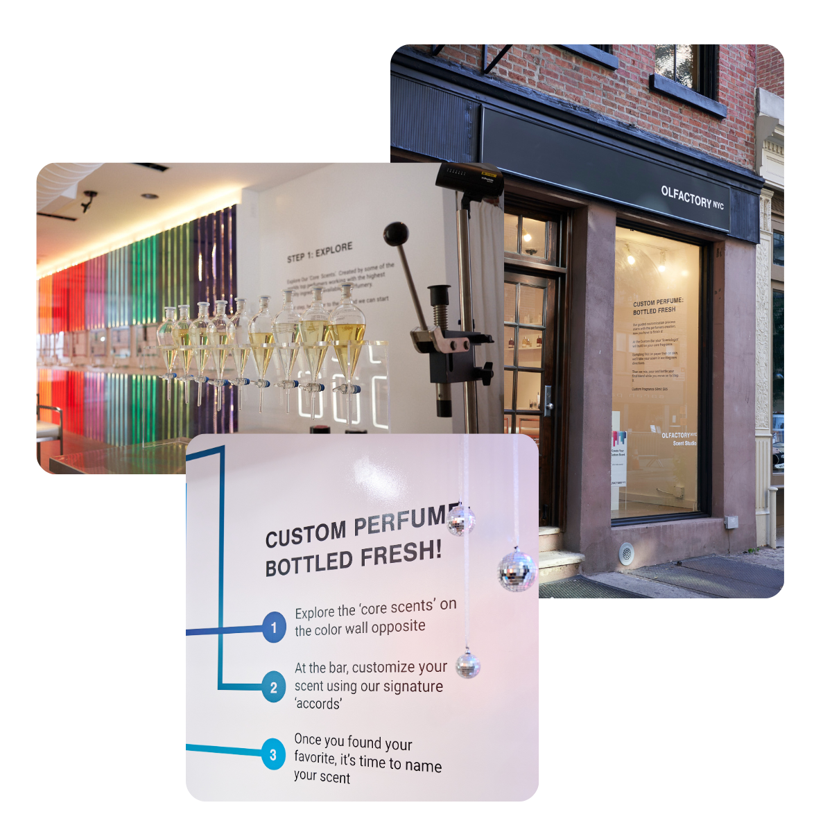 Find Olfactory NYC at 355 Bleecker St, New York, NY 10014—a fragrance studio where you can create your own personalized perfume and body products, as unique and individual as you are.