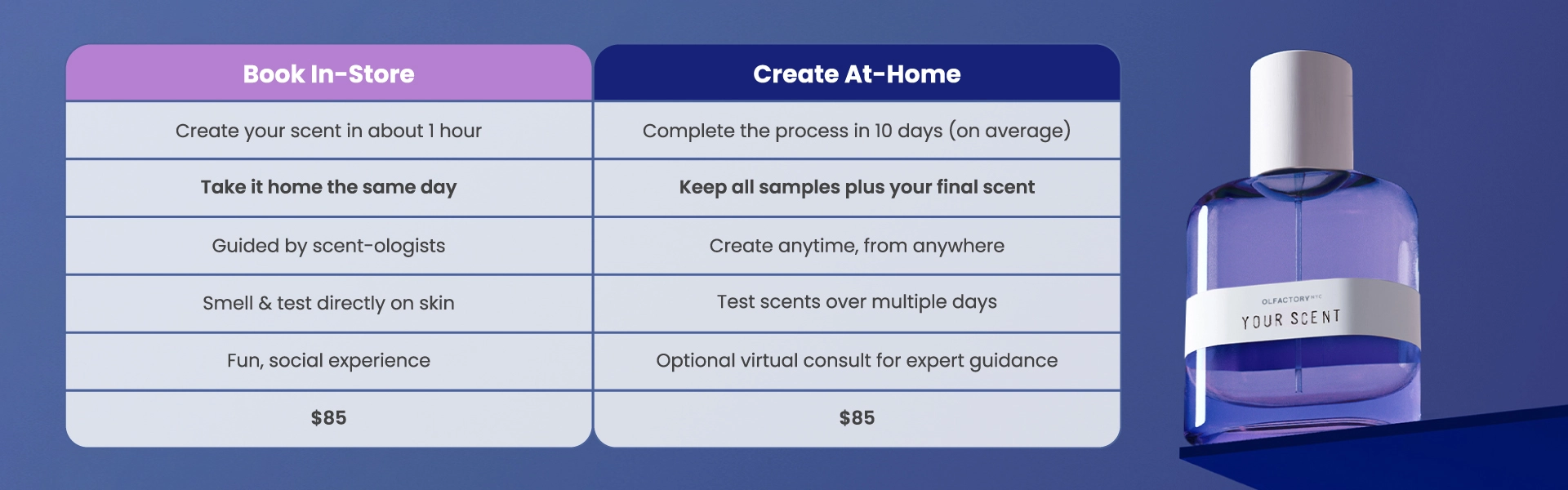 Whether in-store or online, explore, blend, and learn the language of fragrance through a guided, hands-on experience.