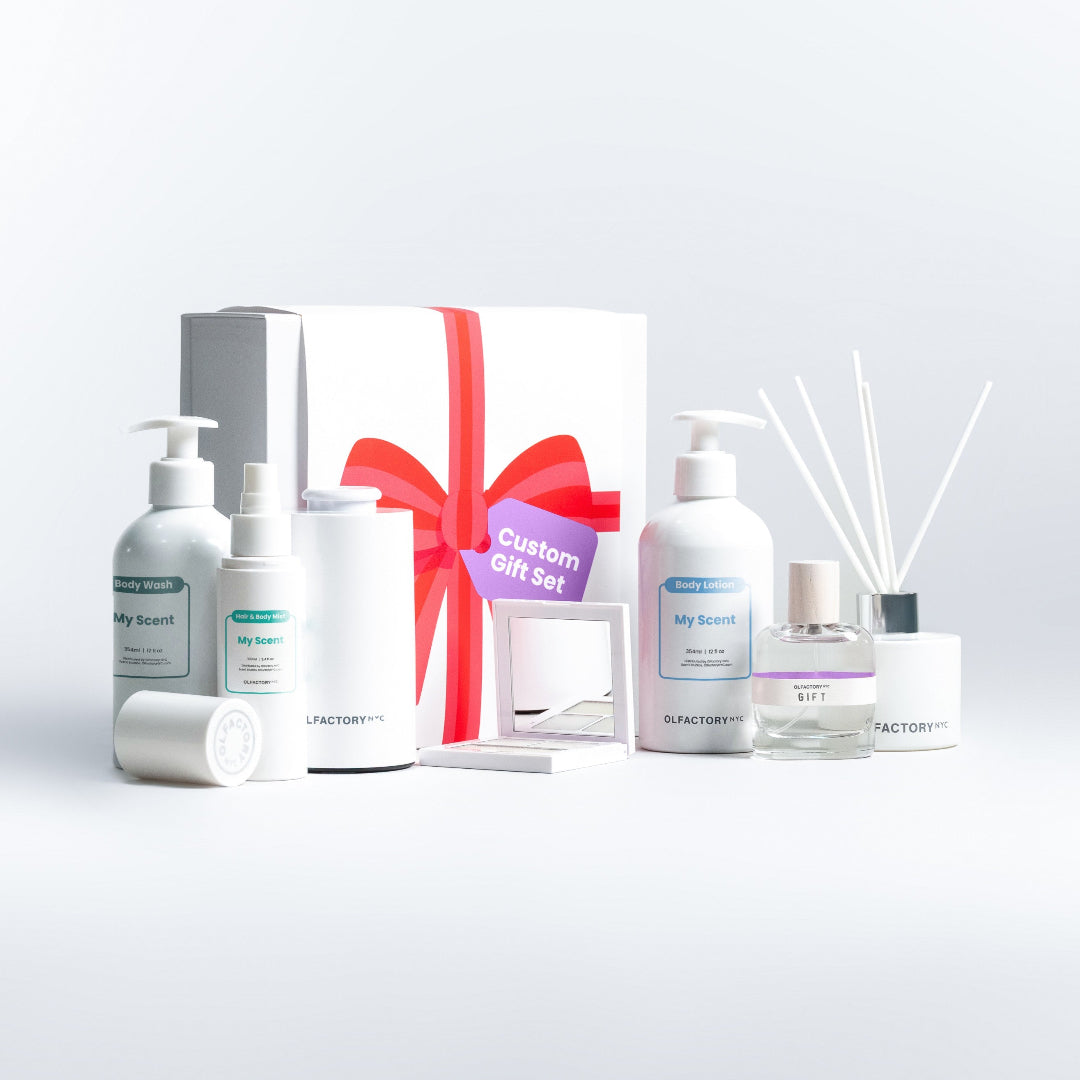 *Please note this is a PHYSICAL PRODUCT. When you order it you will not receive an email gift card. We will send you a gift box of empty bottles (perfume, body wash, body lotion, and diffuser, solid scent palette) for the recipient to bring to our store to fill with their custom scent!